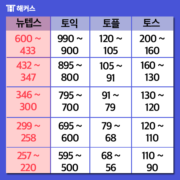 뉴텝스 점수 환산표를 준비했습니다! :)