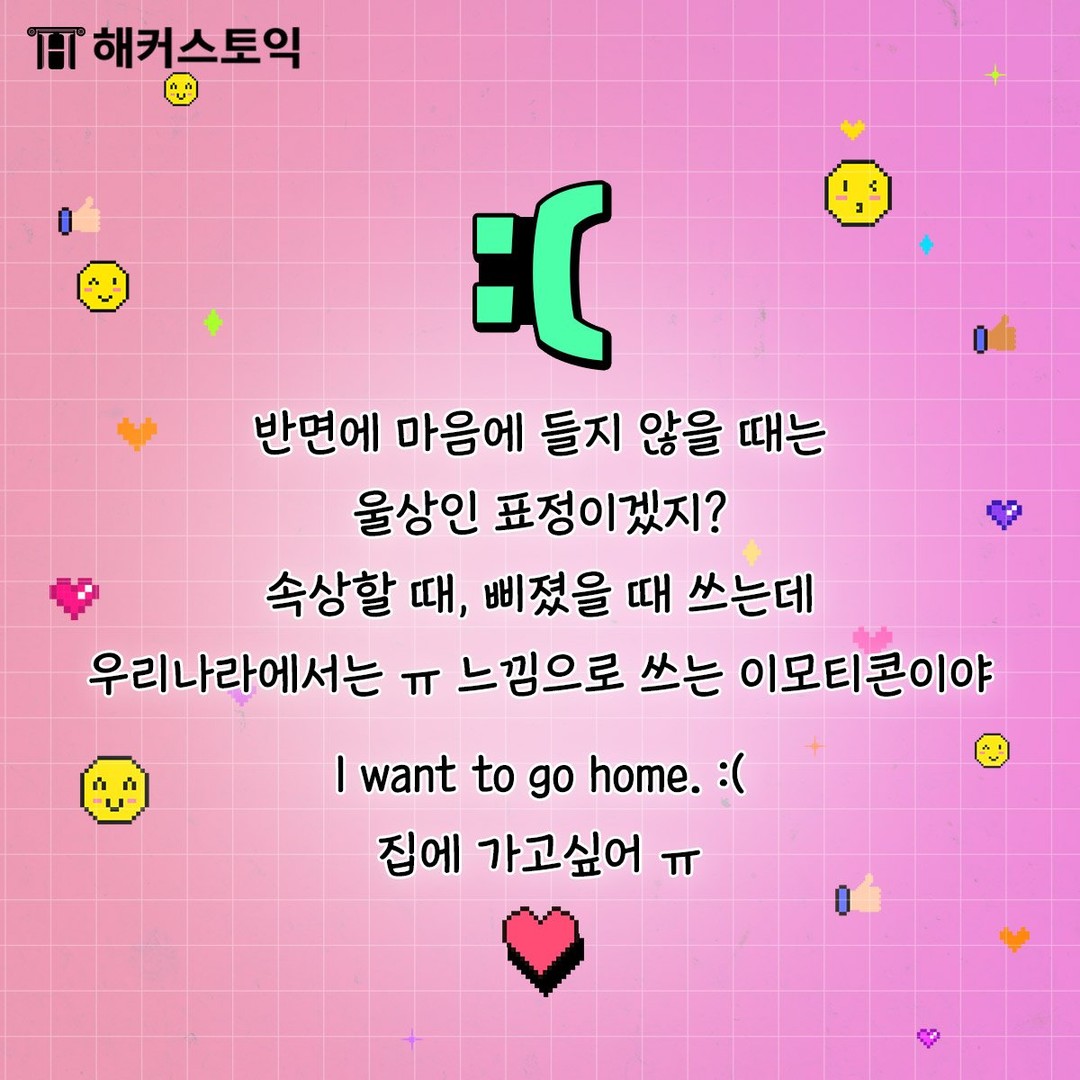 속상할 때, 삐졌을 때 ㅠ 느낌으로 쓰는 이모티콘이랍니다!