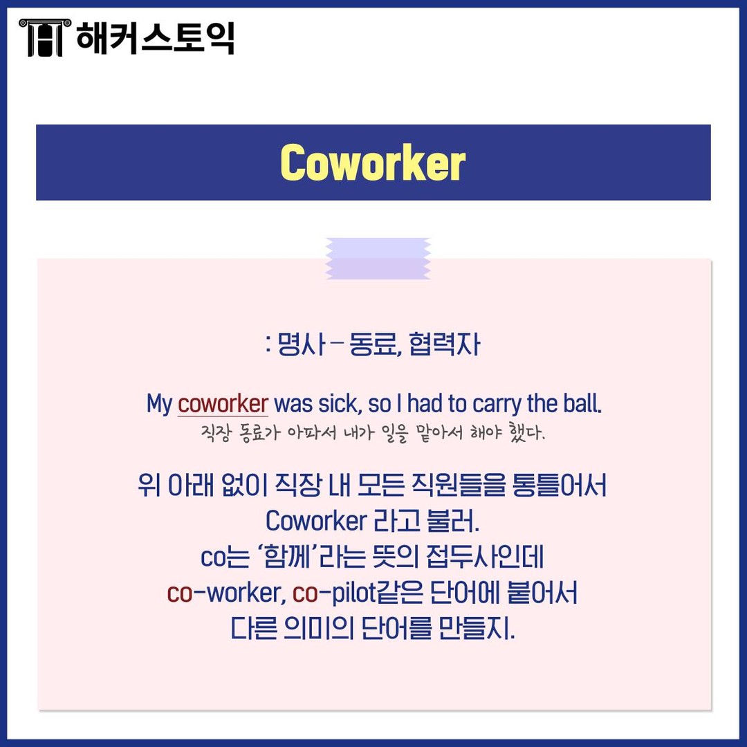 직장 내 몯느 직원들을 통틀어서 Coworker라고 불러요~