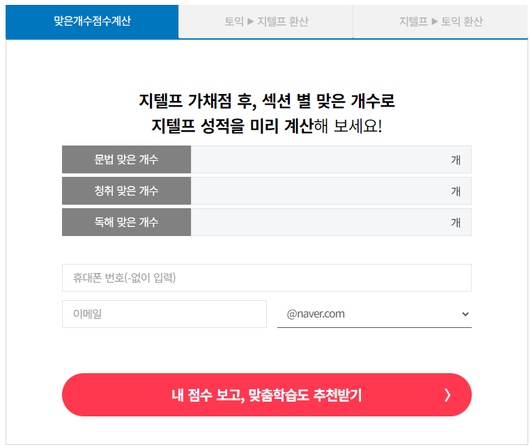 점수를 예상해주는 100% 무료 지텔프 채점서비스에요!