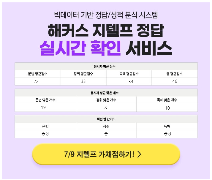 해커스영어의 노하우가 담겨있는 지텔프정답 실시간확인 서비스는