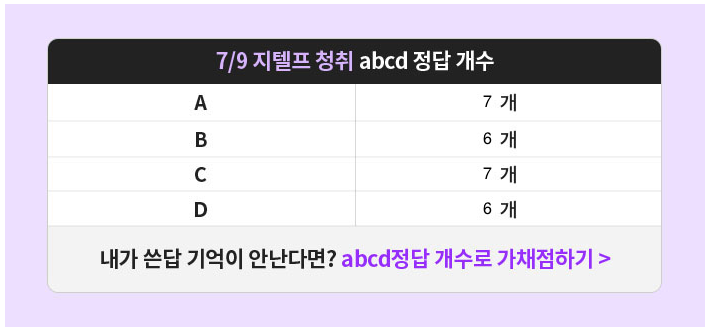바로 지텔프 청취 abcd 정답 개수에요!