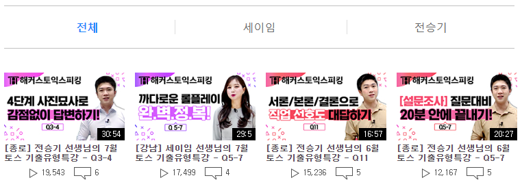 이렇게 총 2분의 선생님들께서 최근 토익스피킹 기출 문제를 꼼꼼하게 분석해서