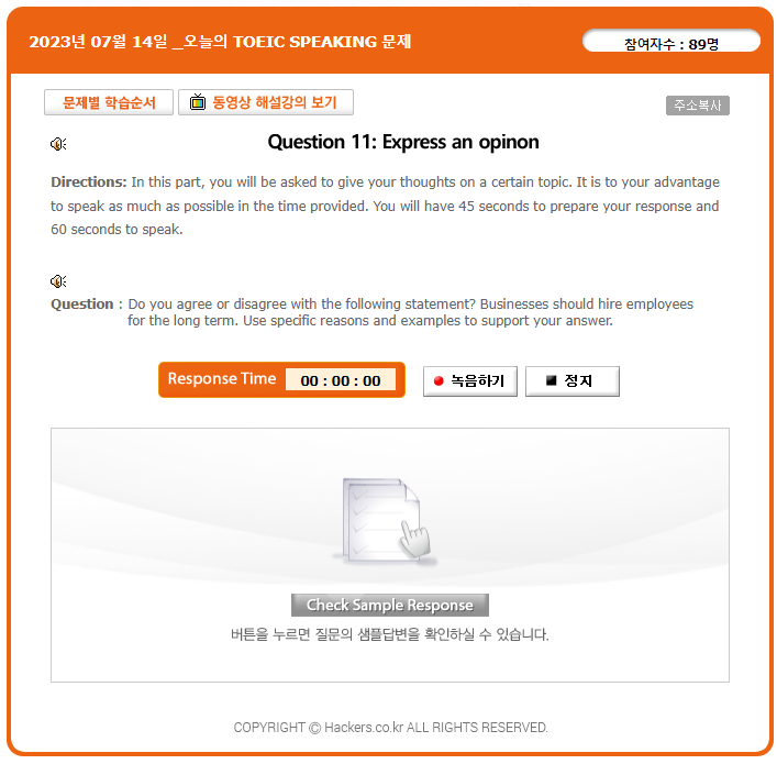 다음은 실제 토익스피킹 시험처럼 시험 준비할 수 있게 해주는