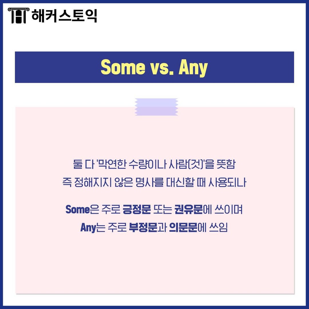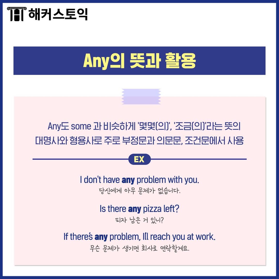 대명사와 형용사로 주로 부정문문과 의문문, 조건문에서 사용돼요!