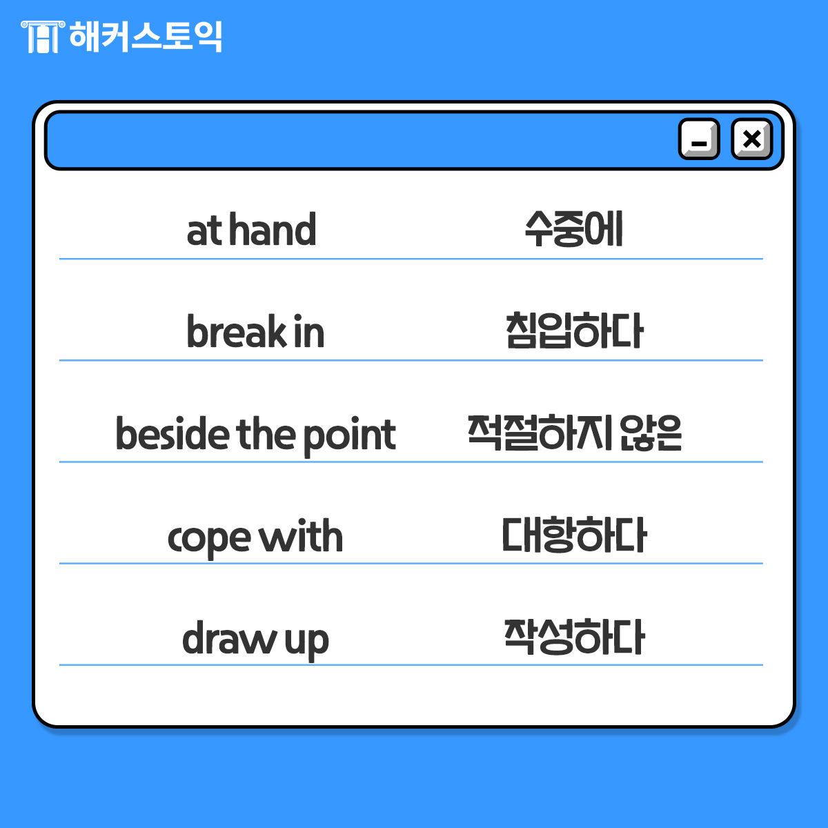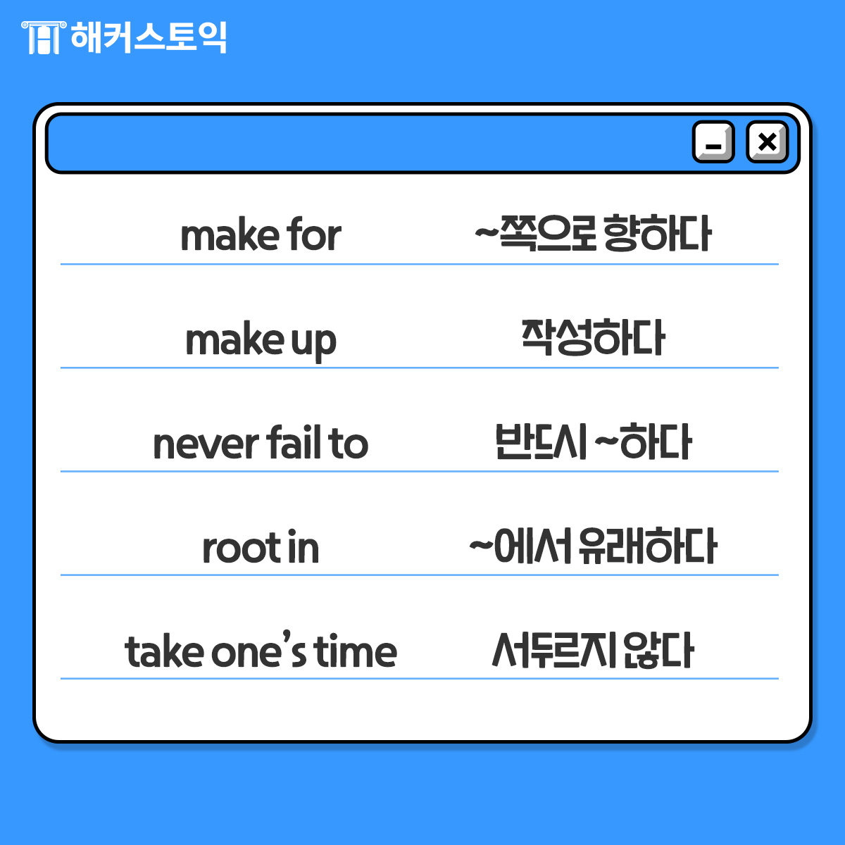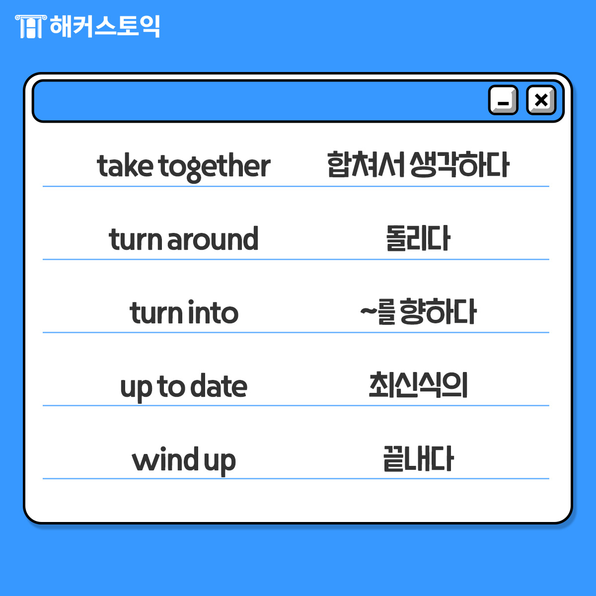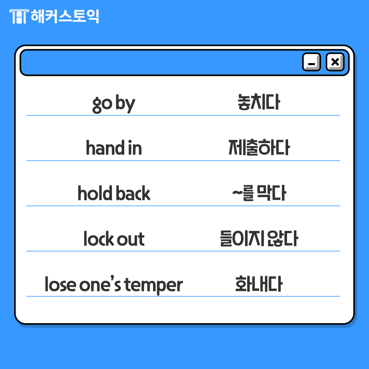 오늘 배운 숙어들 완벽하게 외워두어요~