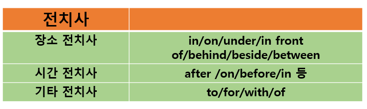 전치사의 종류는 아래의 표로 확인해보겠습니다!