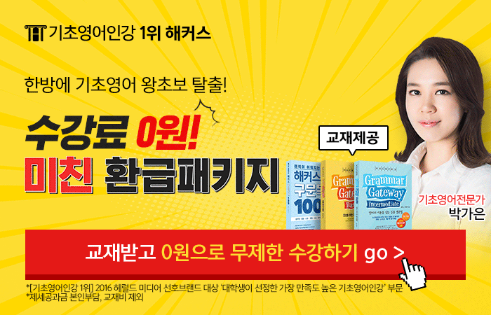 ▼한방에 기초영어 왕초보 탈출! 수강료 0원 미친 환급패키지▼