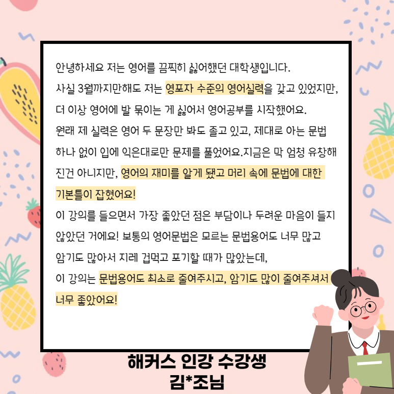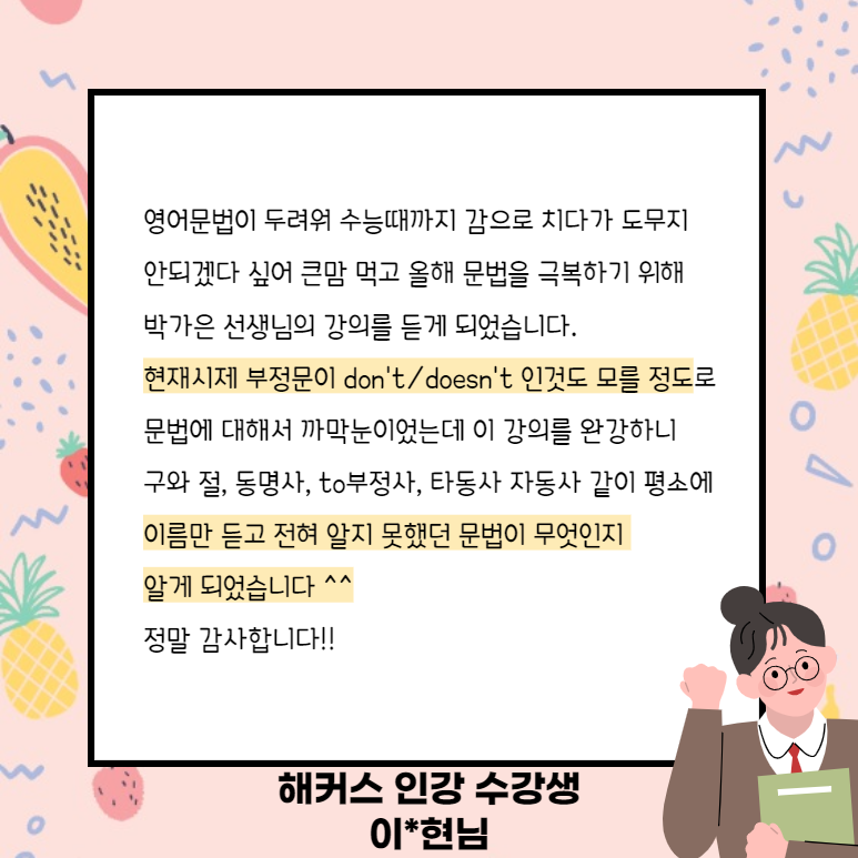 두려운 영문법을 극복하기 위해 강의를 듣게 되었다고 합니다.