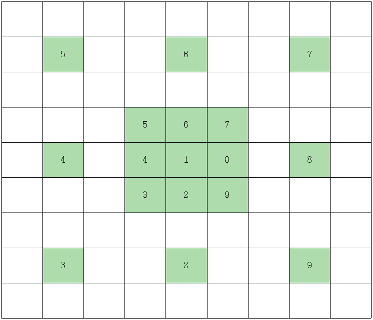 그리고 그 주변 8칸에는