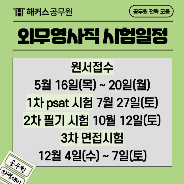 외무영사직을 준비하는 수험생이라면 오늘 소개해드린 정보 확인하여 시험 준비하시길 바랍니다.