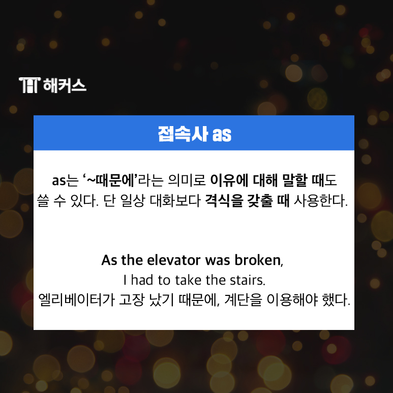 일상 대회에서 자주 쓰이는 접속사 as 표현이 있습니다.