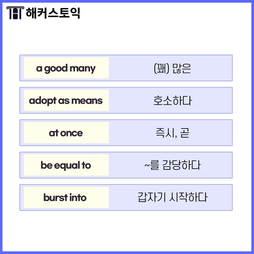 시험에 필수로 나오는 족집게 숙어 표현들이니 꼭 익혀두세요~