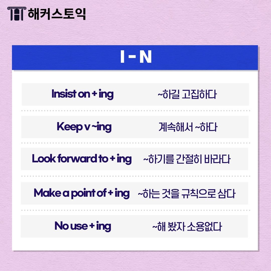 Keep 다음에 동사원형이 오고 + ing 이렇게 같이 쓰인다는 걸 알아둔다면