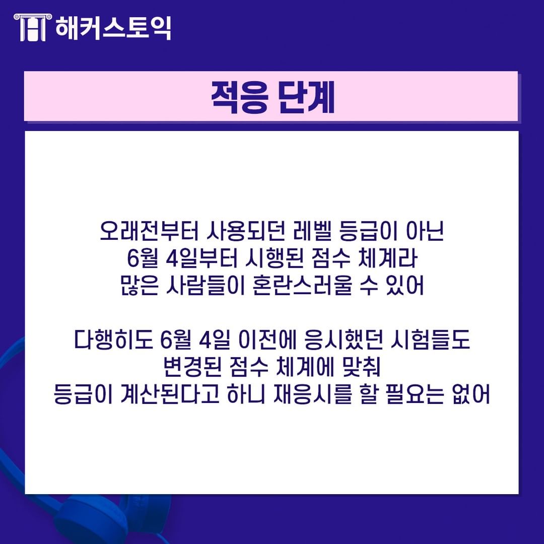 지난 6월 4일(토) 시험부터 새로운 점수 체계가 적용되었어요