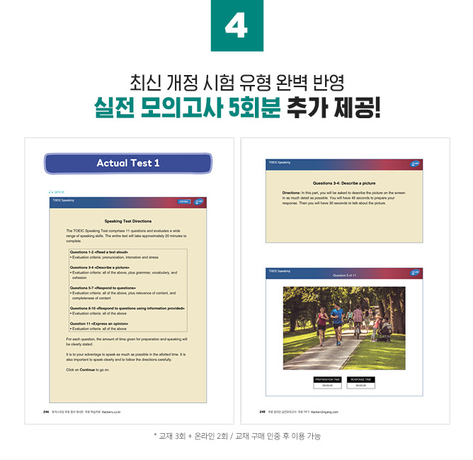 실제 시험과 동일한 난이도의 토익스피킹 모의고사가 5회 분이 실려있다는 거에요