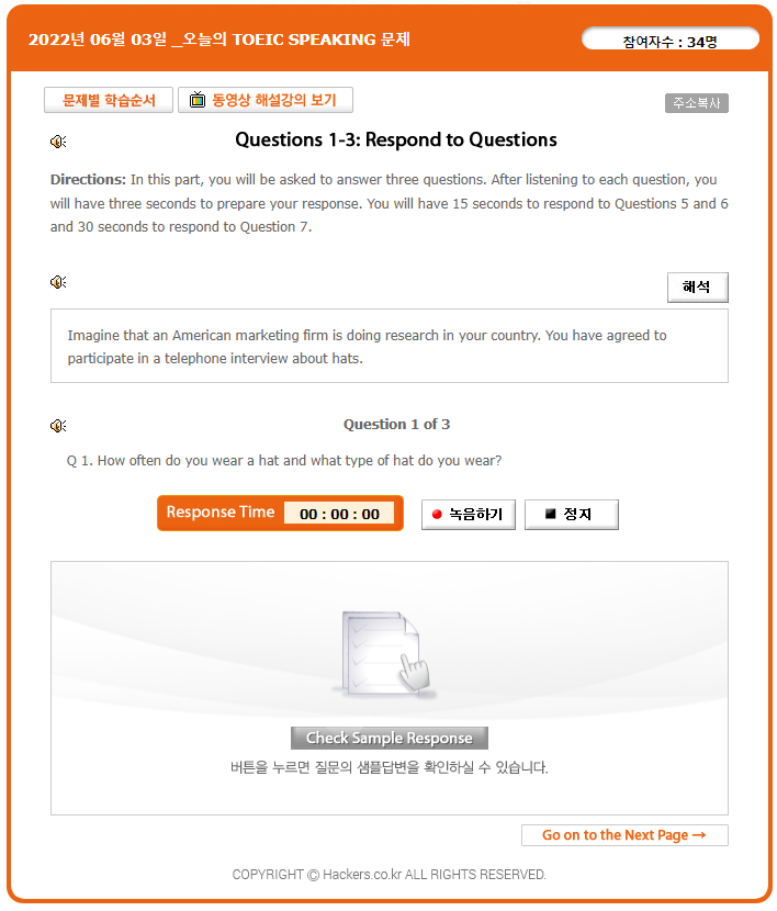 정말 실제 시험처럼 문제를 듣고 답변을 말하면서