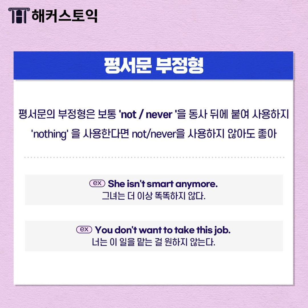 | 쉽고 빠르게 부정문 만드는 방법☞ (1) | 2022.06.19 |