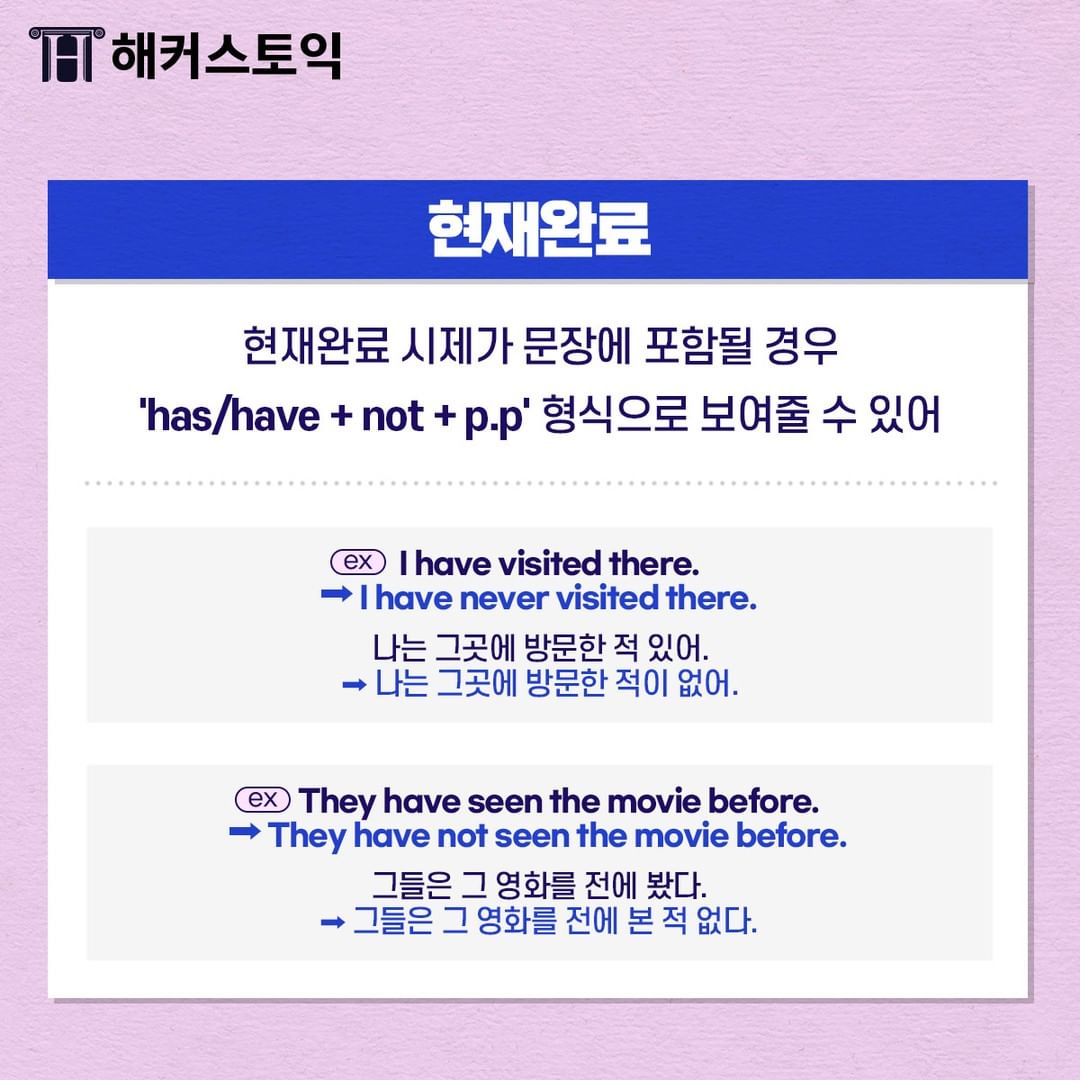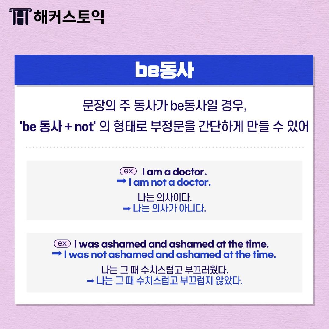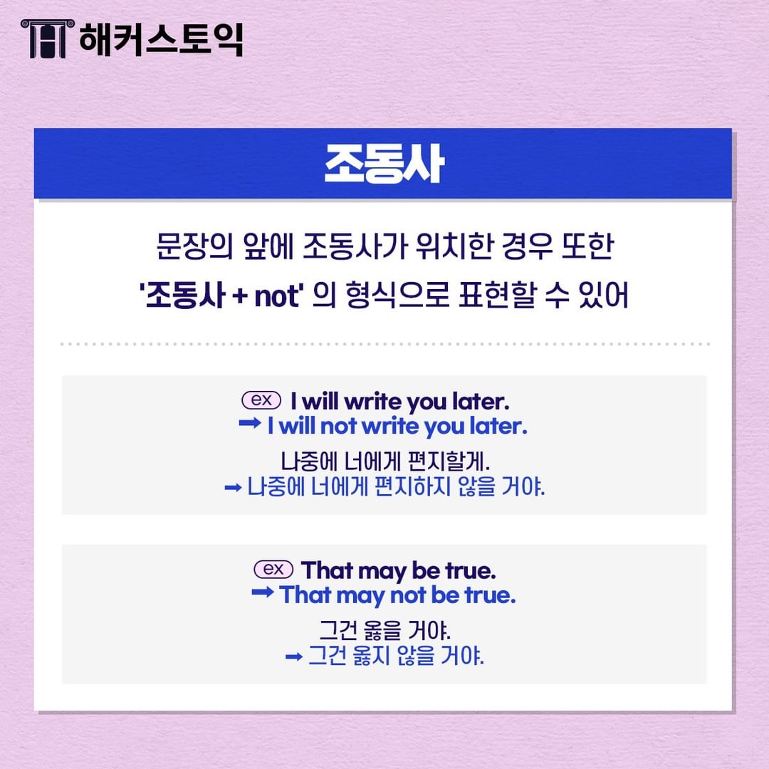 정확하게 알아두어서 부정문 빠르게 해석할 수 있게 해보아요~