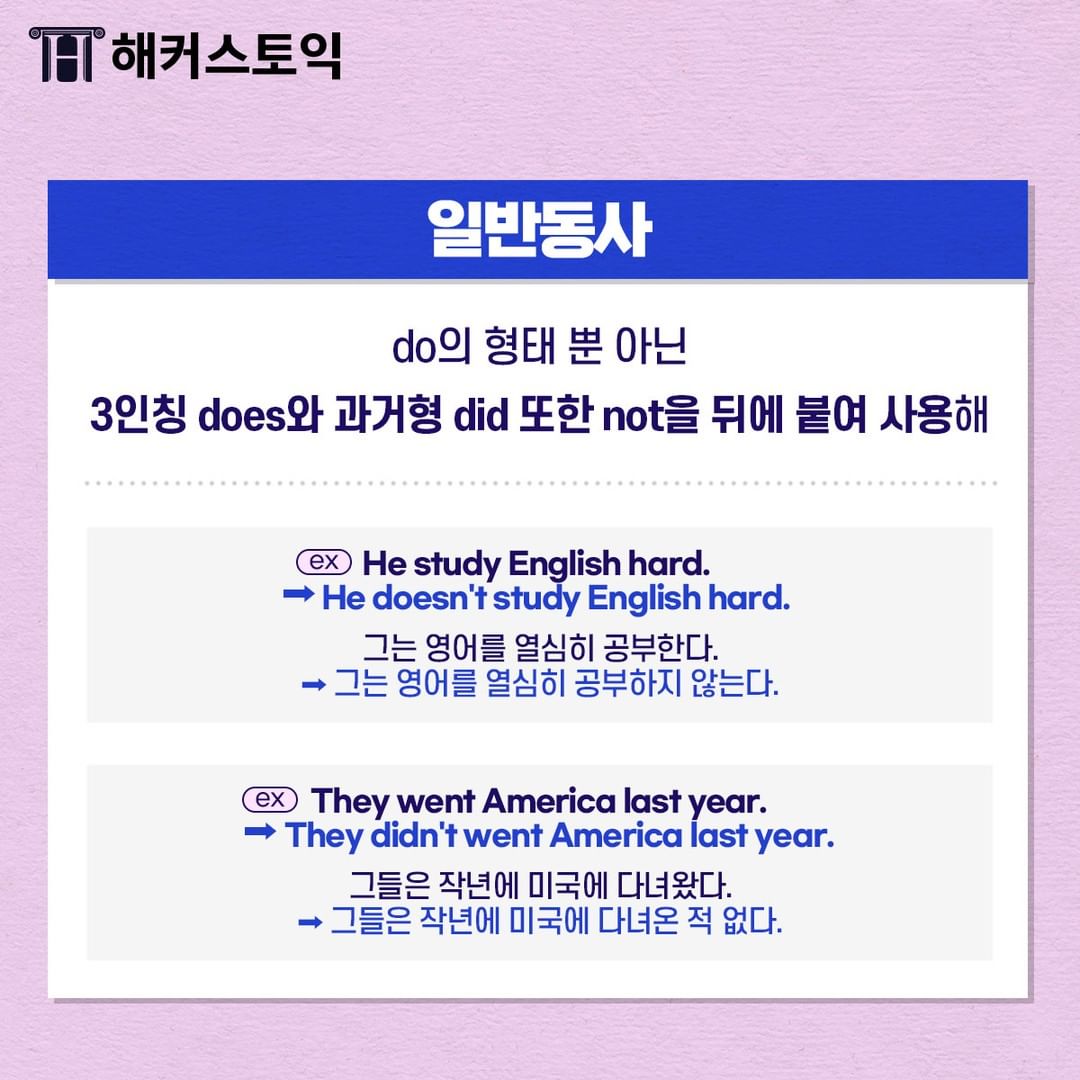 'does + not', 'did + not'을 사용하면 된답니다!