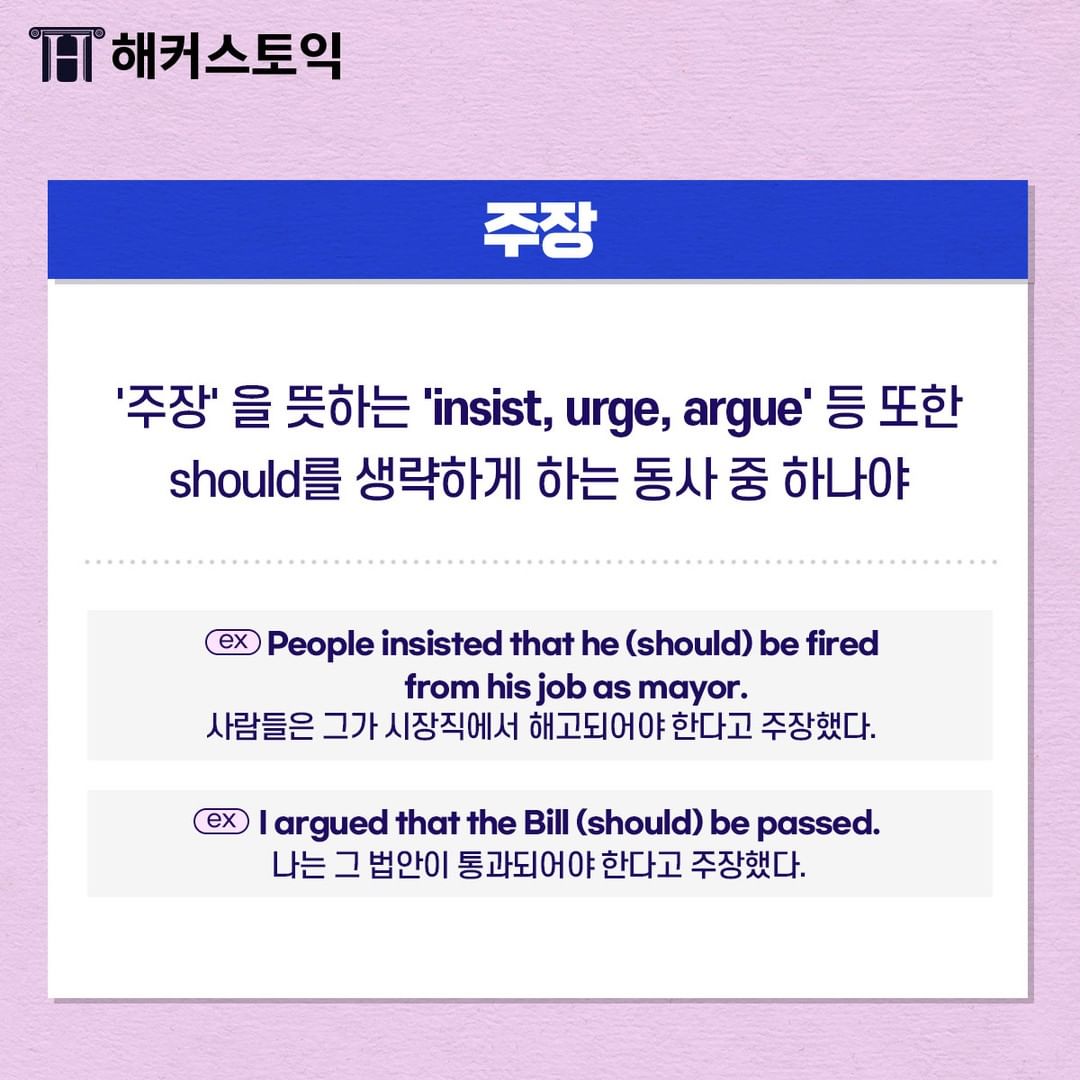 '주장'을 뜻하는 'insist, urge, argue' 등 또한