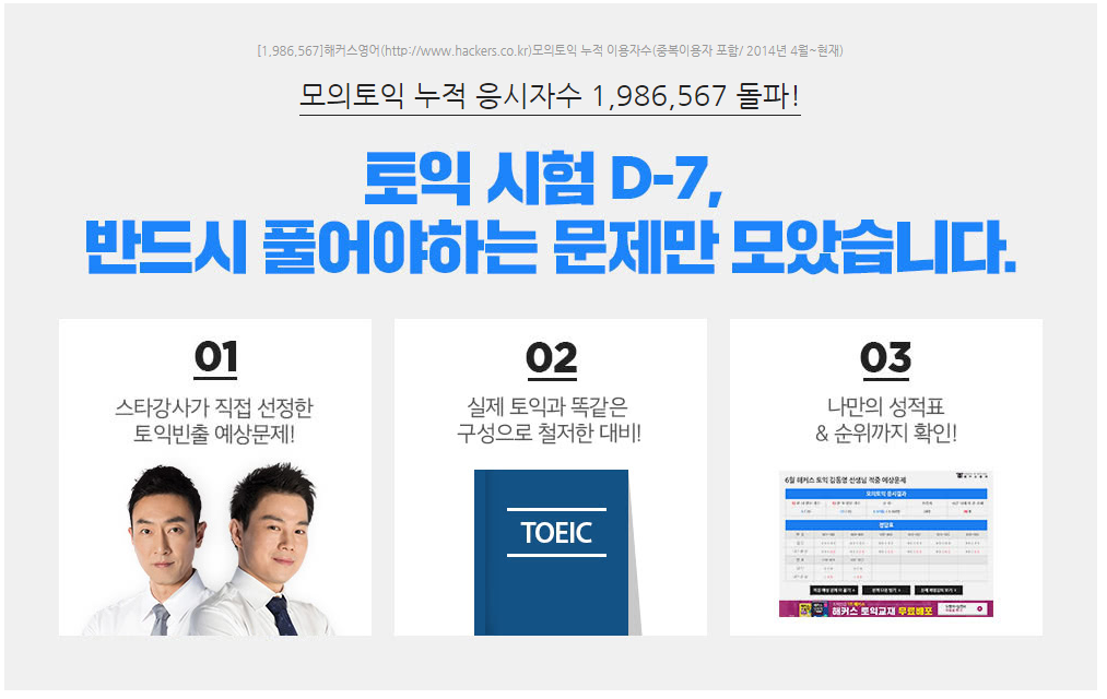 190만명이 넘는 어마어마한 모의토익 응시자 수만 봐도
