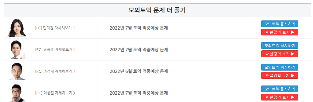 스타강사 선생님들의 적중 토익 문제가 모두 업데이트 되었으니 문제 풀어 보아요