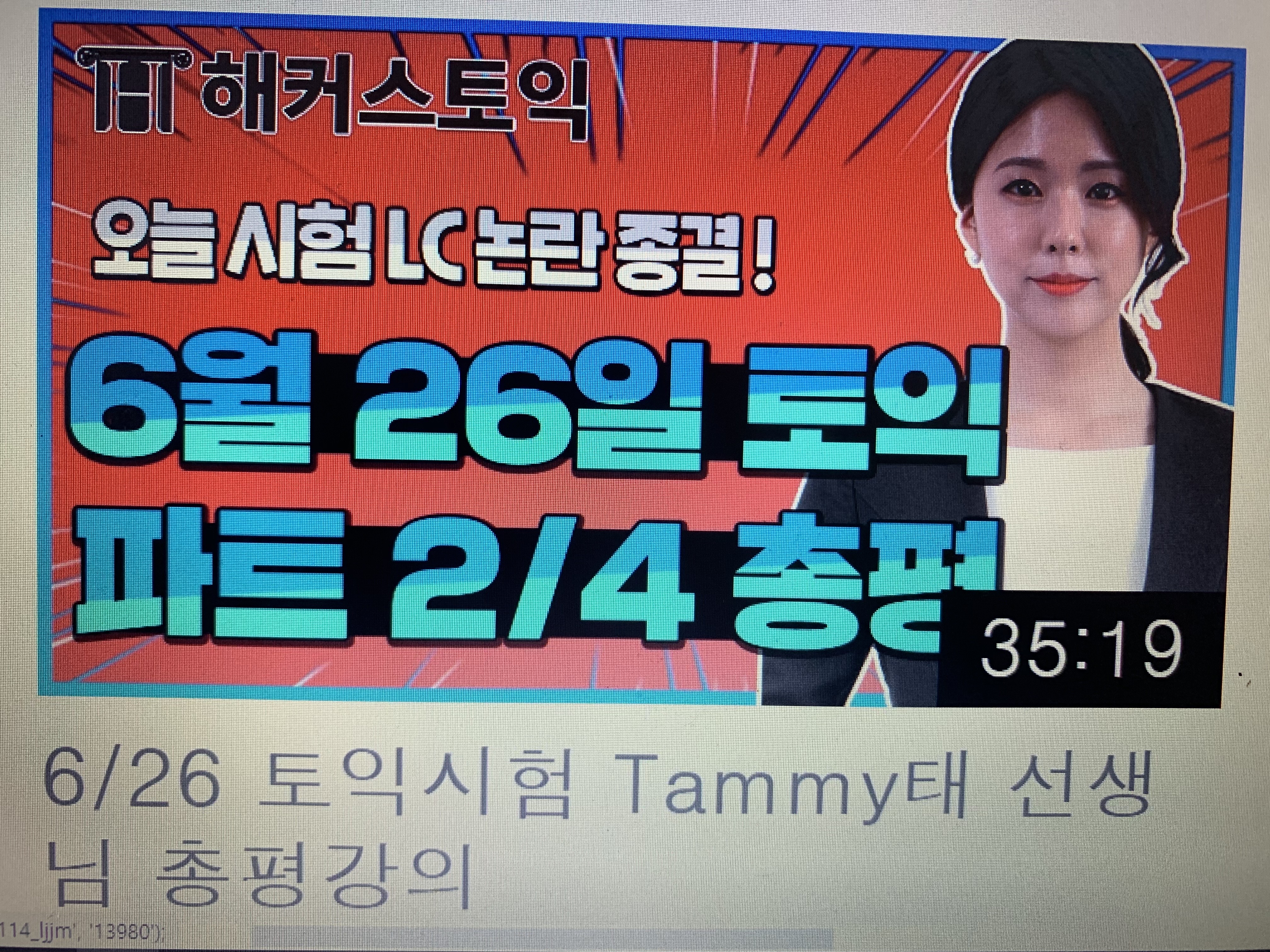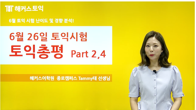 해커스 Tammy 태 선생님께서 6월 26일 토익 시험 LC 파트 2,4에 대한 후기를 알려주시니