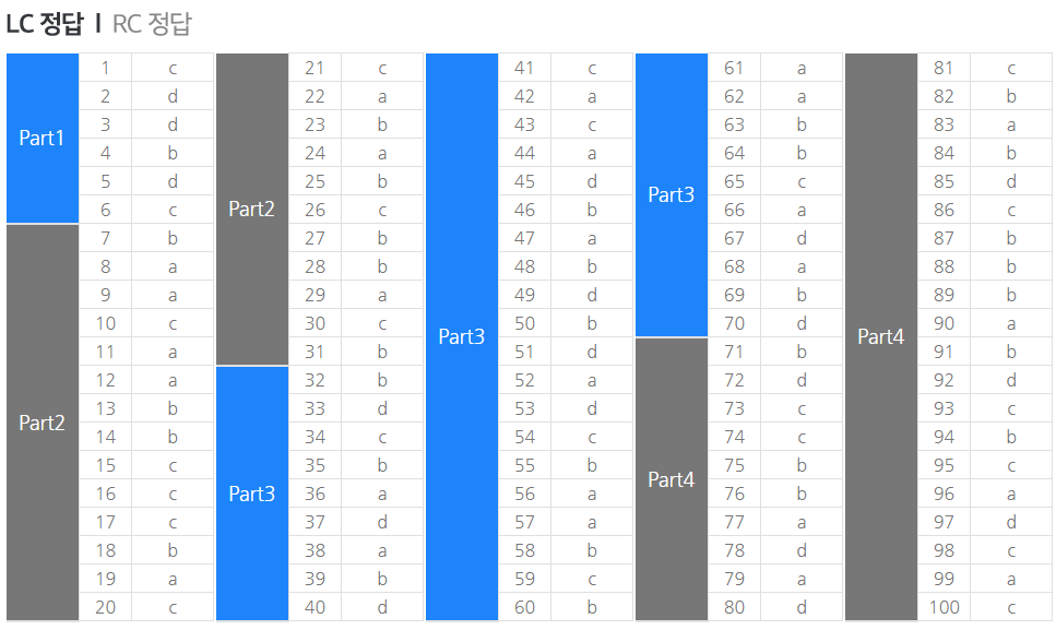 특히 LC 파트 2,4 문제들의 정답이 무엇인지