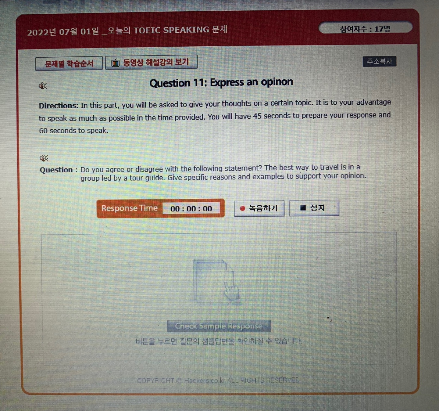 그러니까 여름방학들 맞아서 7월 토익스피킹 시험 얼마 남지 않았으니