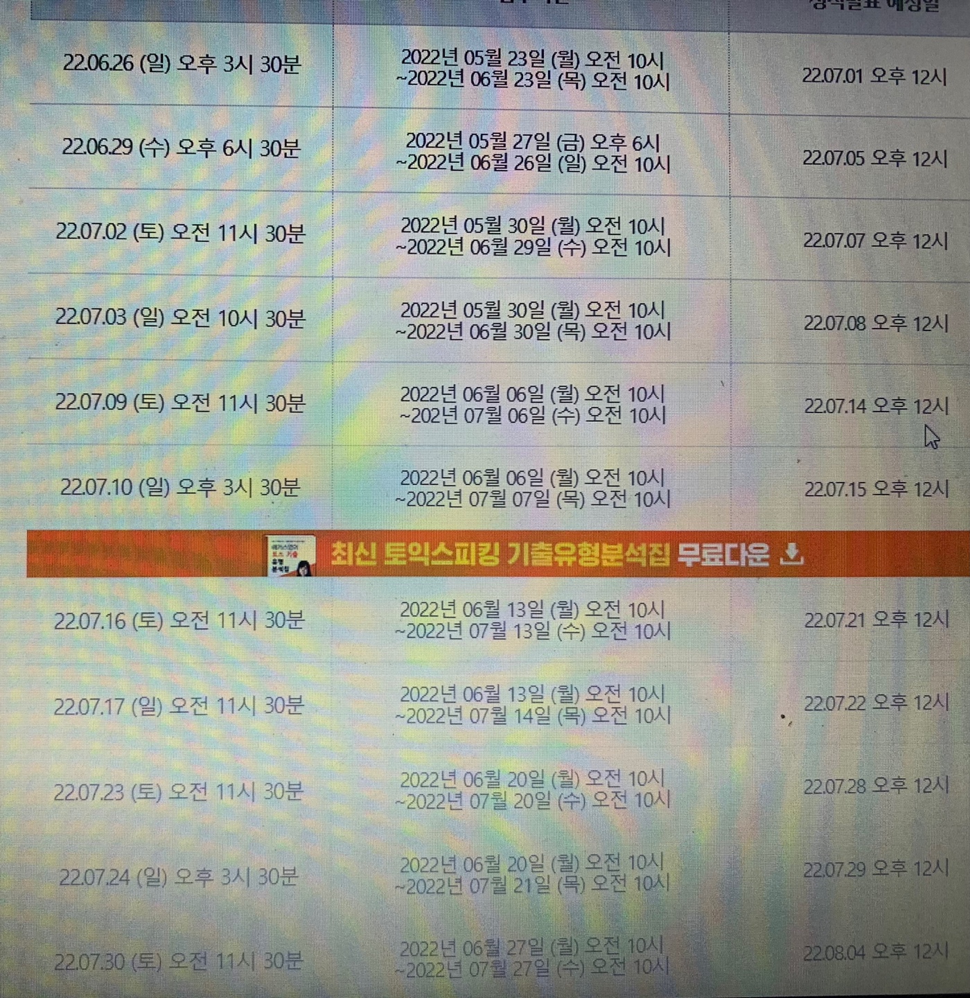 2022년 7월 토익스피킹 시험일정2022년 7월에 토익스피킹 시험 치시는 분들