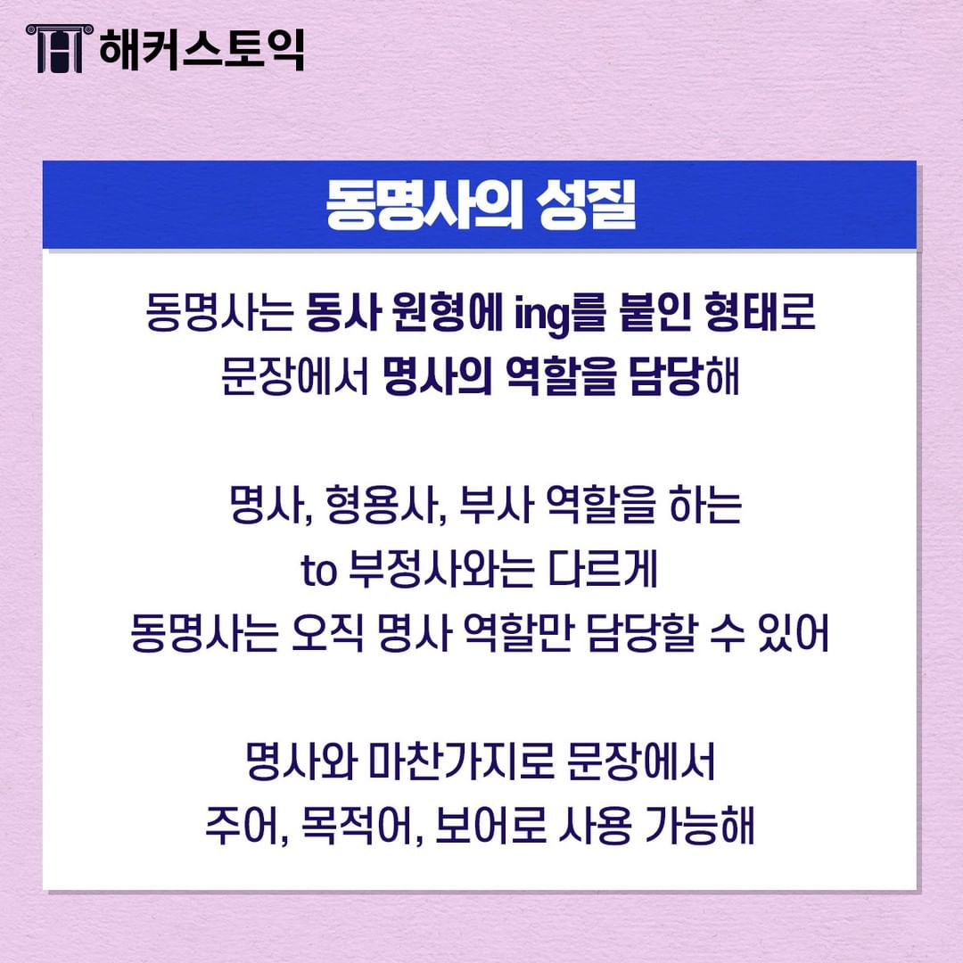 명사와 동명사를 헷갈려하는 분들이 많은 것 같은데요