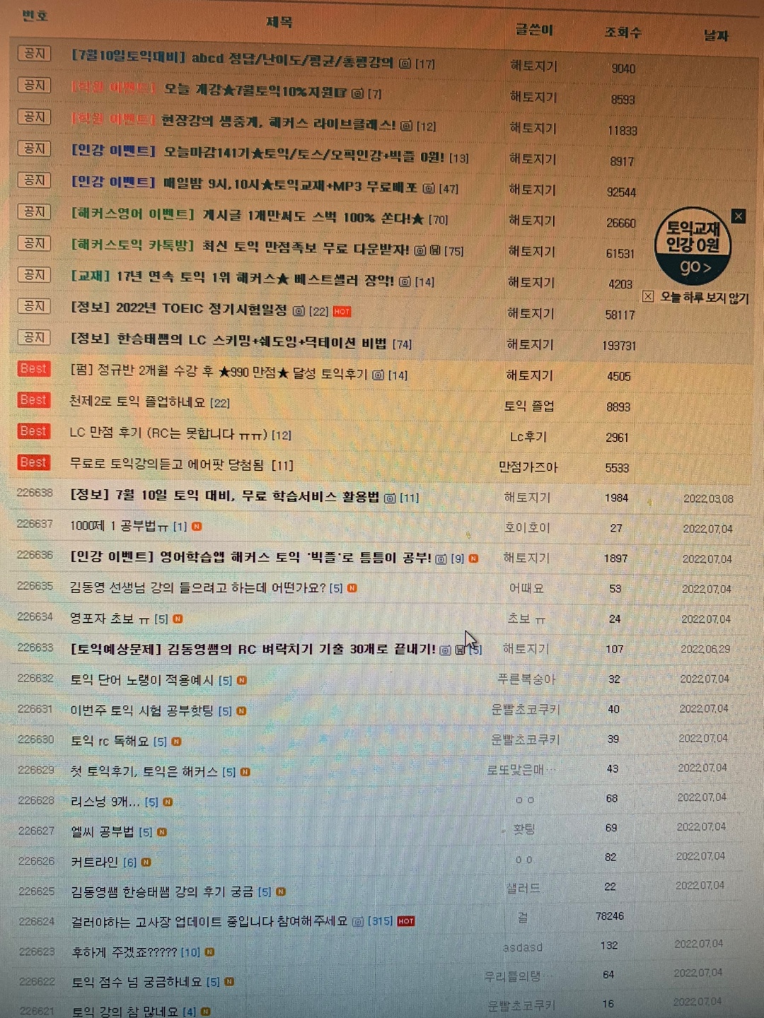 토익정답게시판은