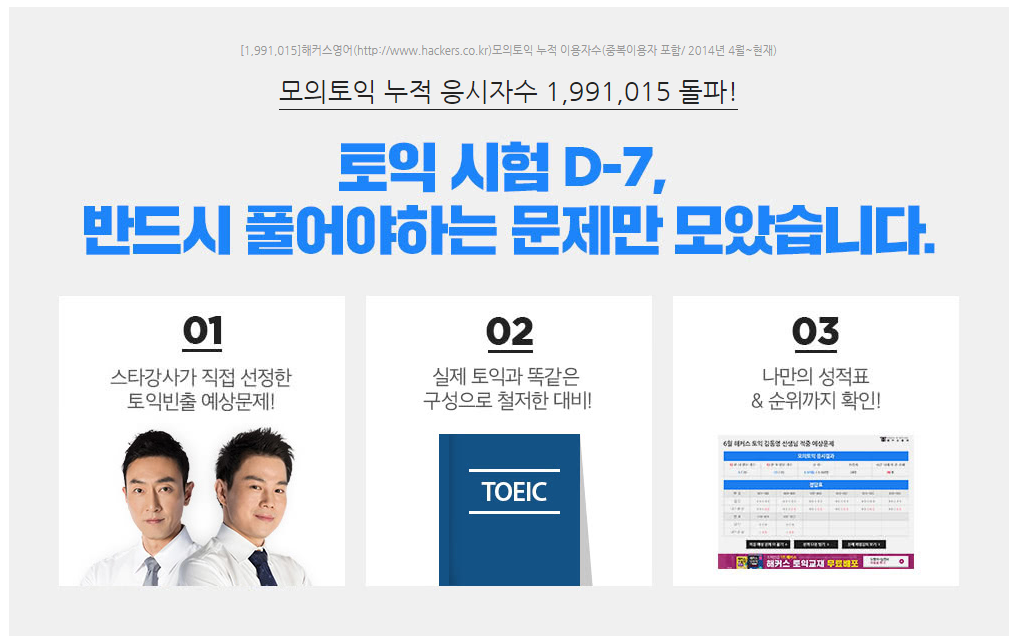 모의토익의 응시자수는 약 200만명에 가까운데요