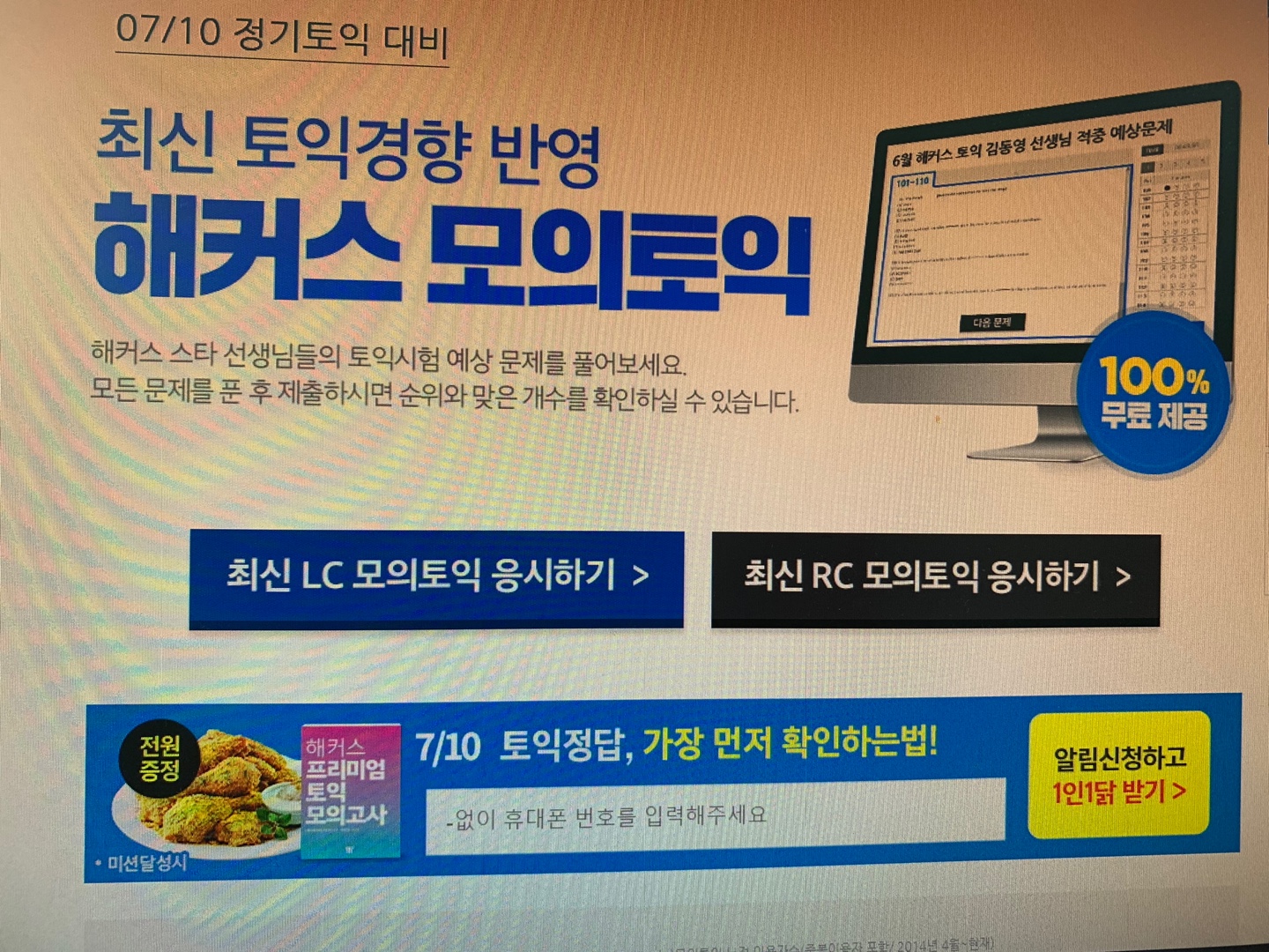 7월 10일 토익 시험을 대비해서