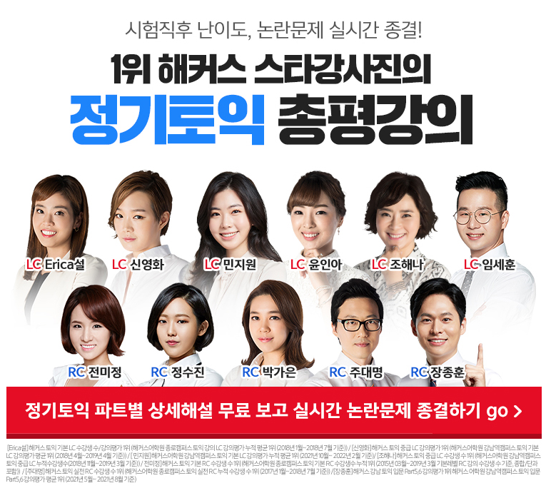 토익 적중예상특강은 해커스 스타강사 선생님들이