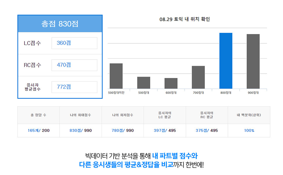내 파트별 점수와 다른 응시 생들의 평균까지 한 번에 볼 수 있어서