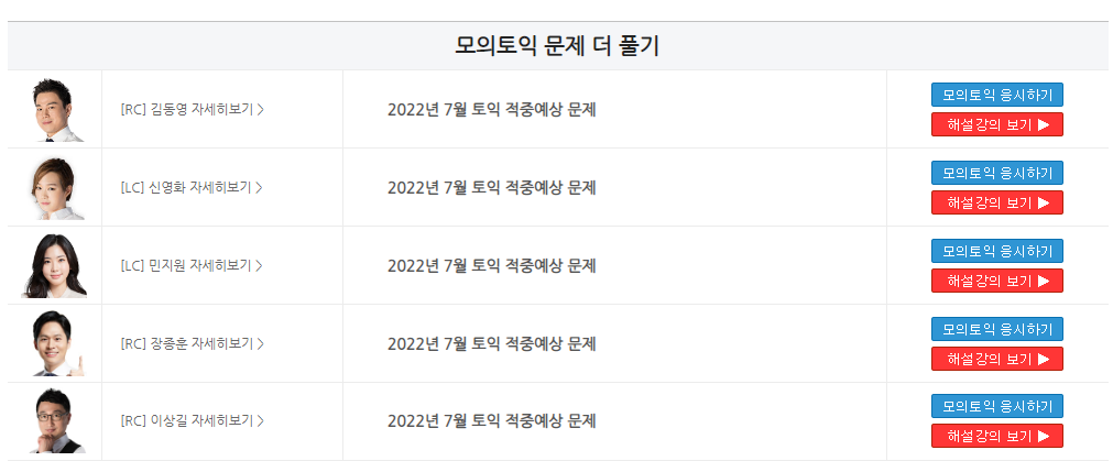 7월 모의토익은 해커스 스타 강사분들이 직접 선정한 문제를