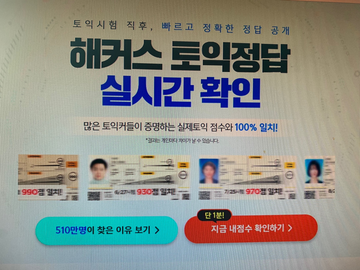 가장 정확하게 토익점수확인 할 수 있으니 꼭 이용하길 바랄게요!