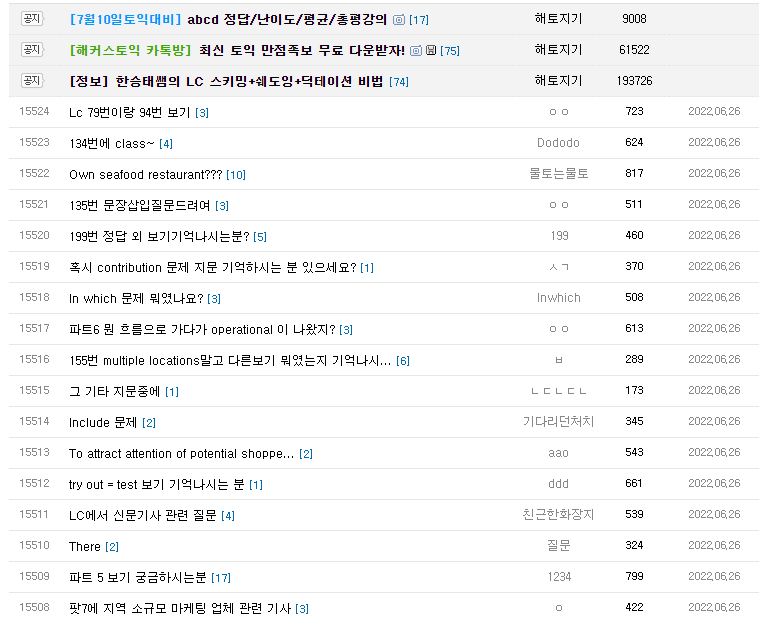 7월 10일 토익 정답에 대한 모든 게시글들을 한 눈에 볼 수 있는 게시판이 에요!