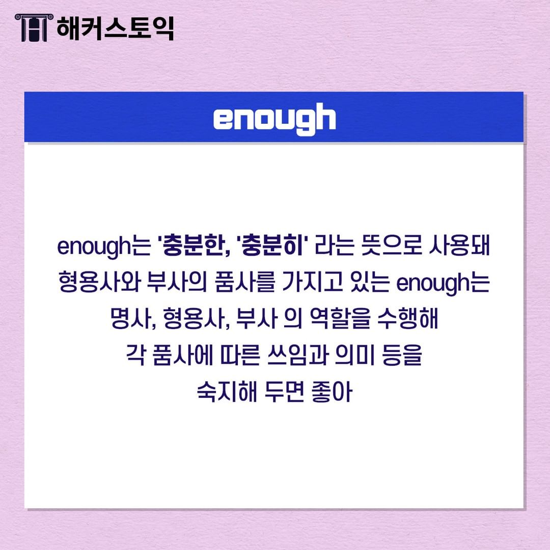 enough는 '충분한, 충분히'라는 뜻으로 사용된답니다