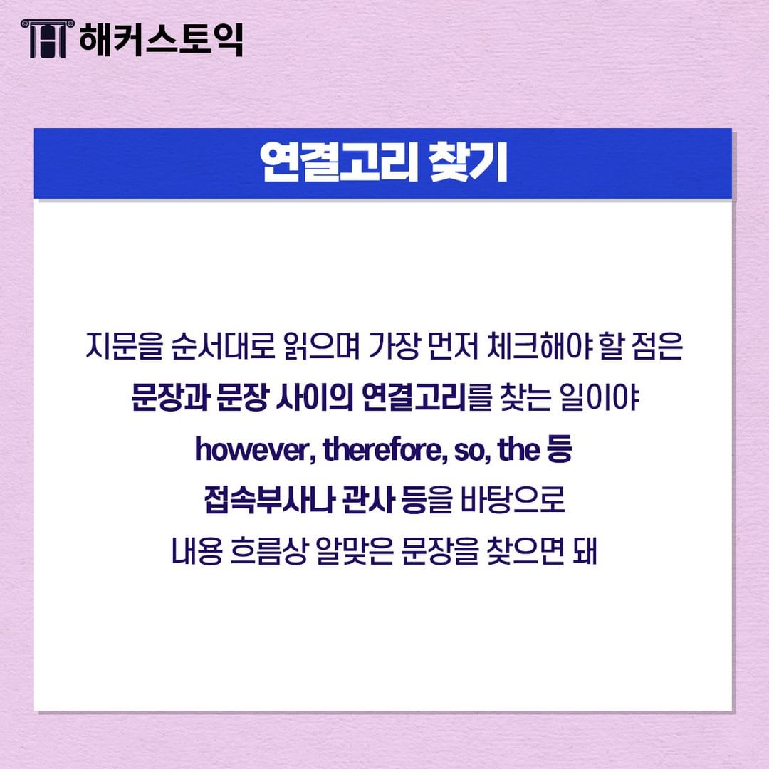 또한 문장과 문장 사이의 연결 고리를 무조건 찾아야 해요