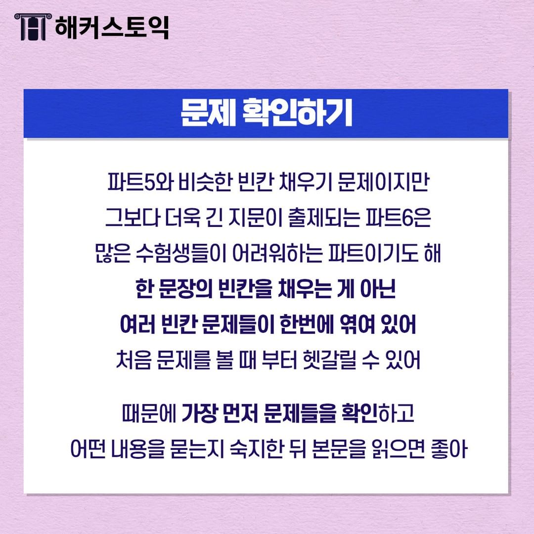 파트 6에서도 역시나 어휘/문법이 중요하답니다