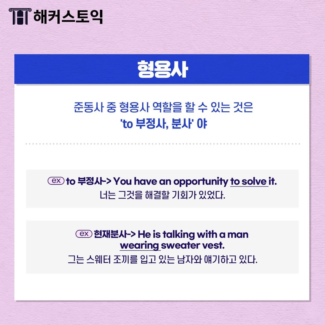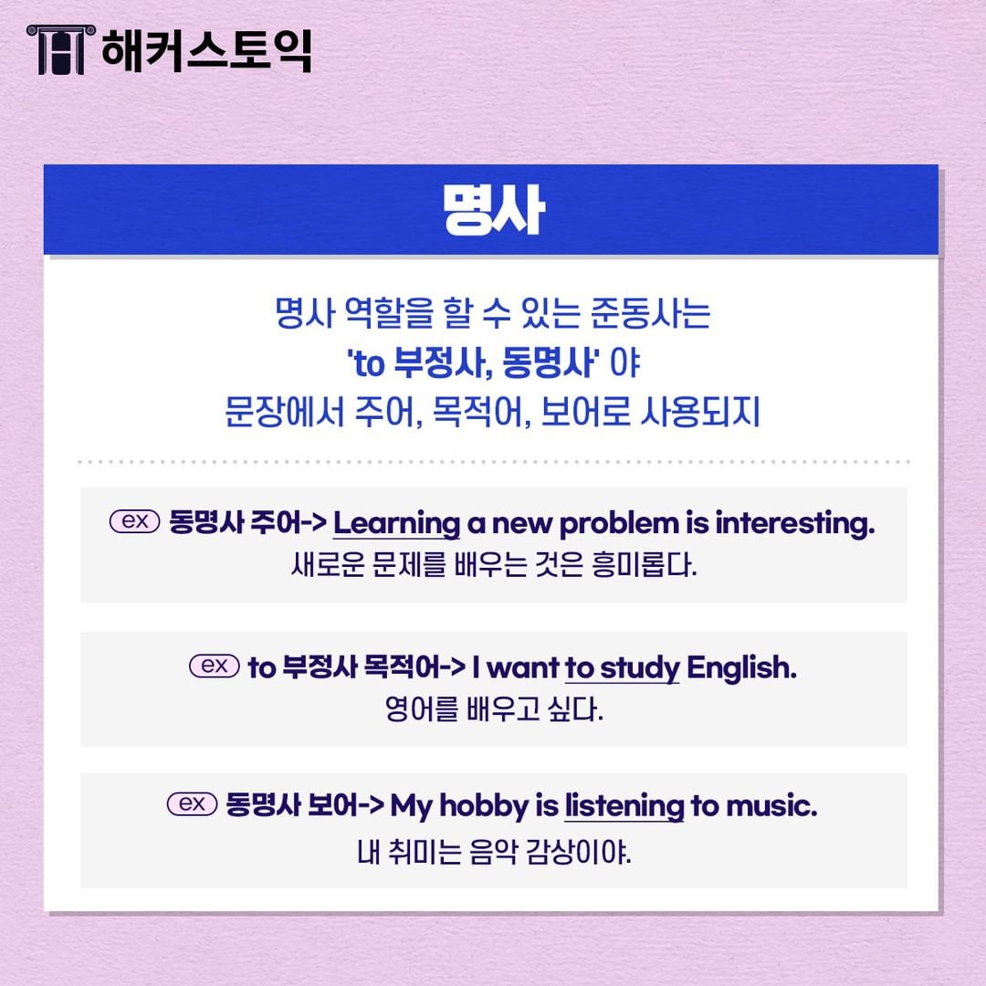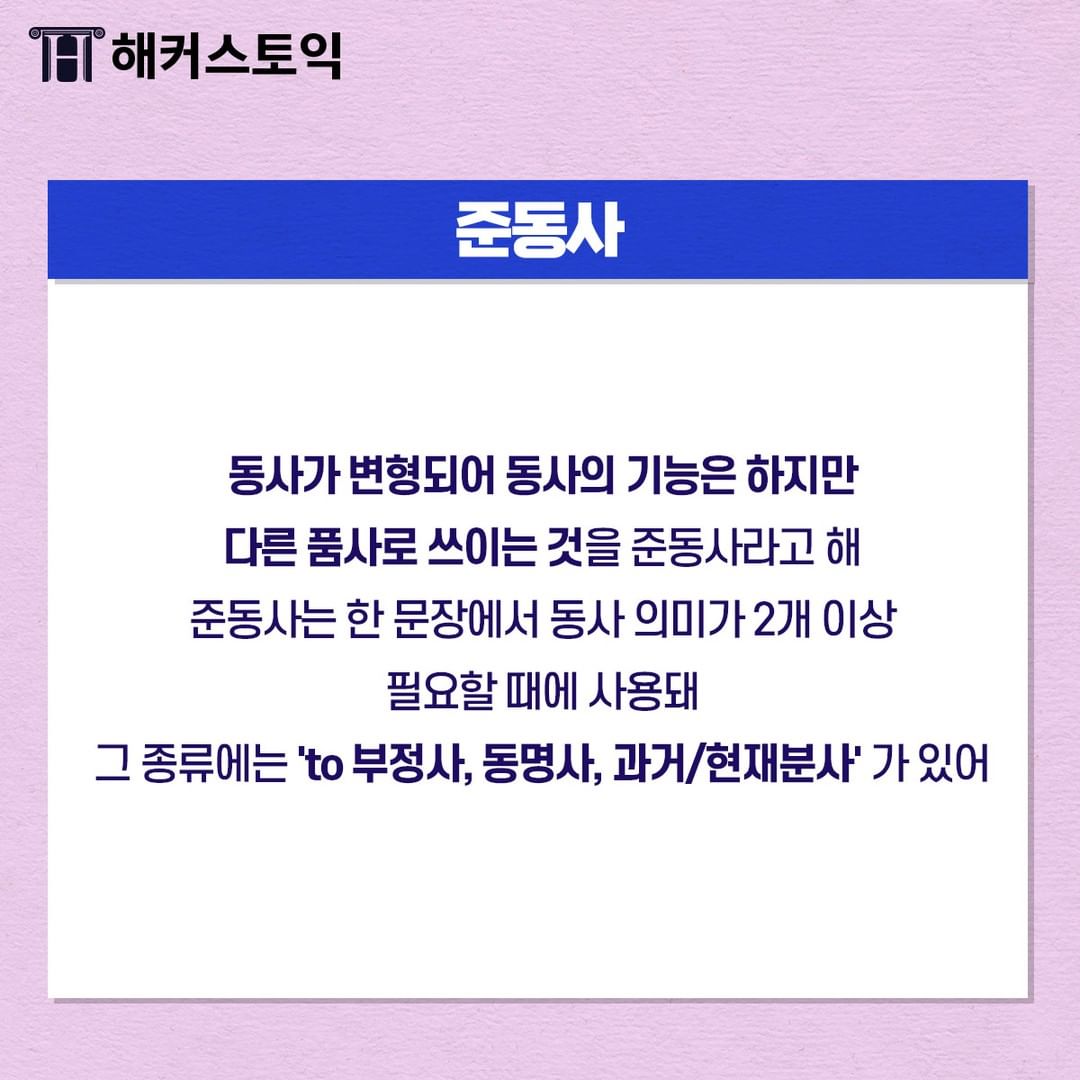 그 종류에는 'to 부정사, 동명사, 과거/현재분사'가 있답니다!