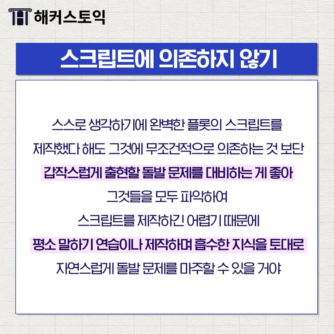 평소 스크립트를 기본으로 한 말하기 연습이나