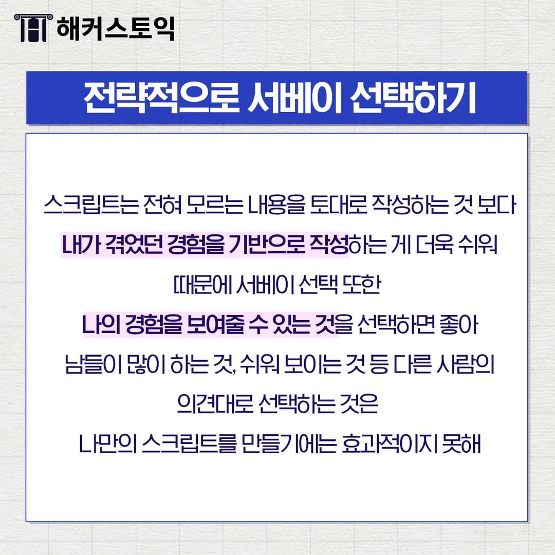 서베이 또한 나의 경험을 보여줄 수 있는 것을 선택하면 좋아요