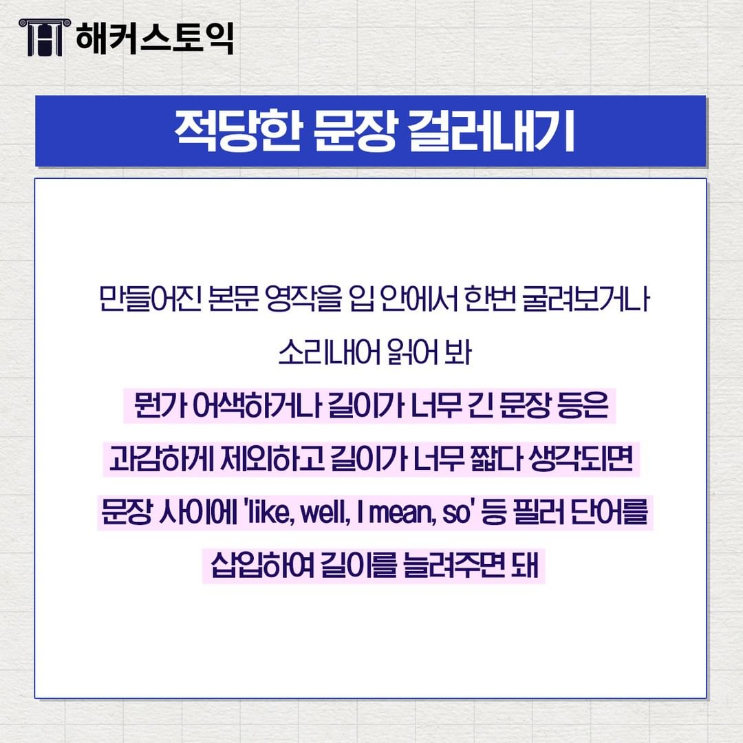 어색하거나 길이가 너무 긴 문장은 과감하게 제외하면 좋아요