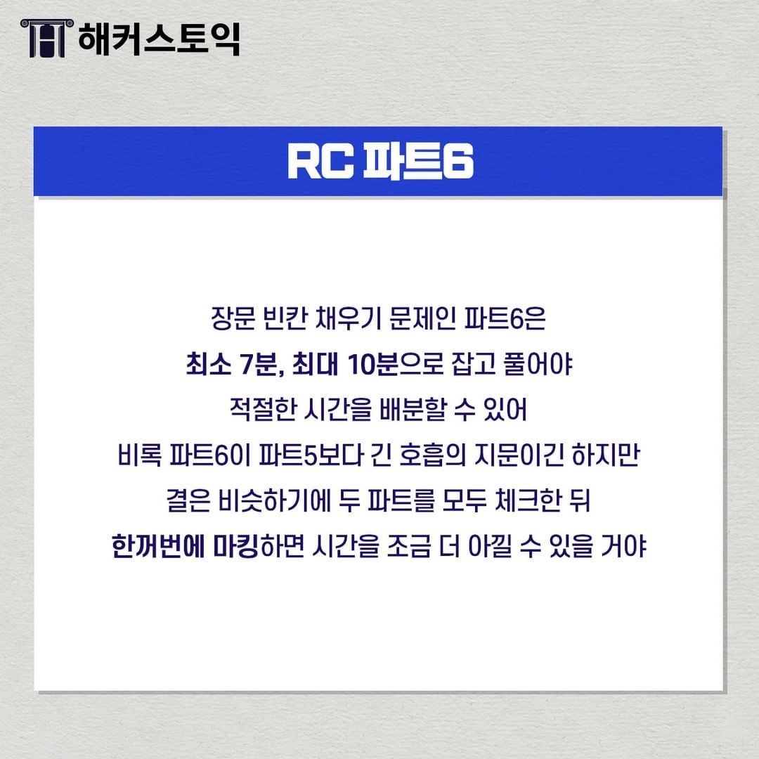 RC 파트 5는 최소 8분 최대 10분 이내에 끝내는 게 좋아요