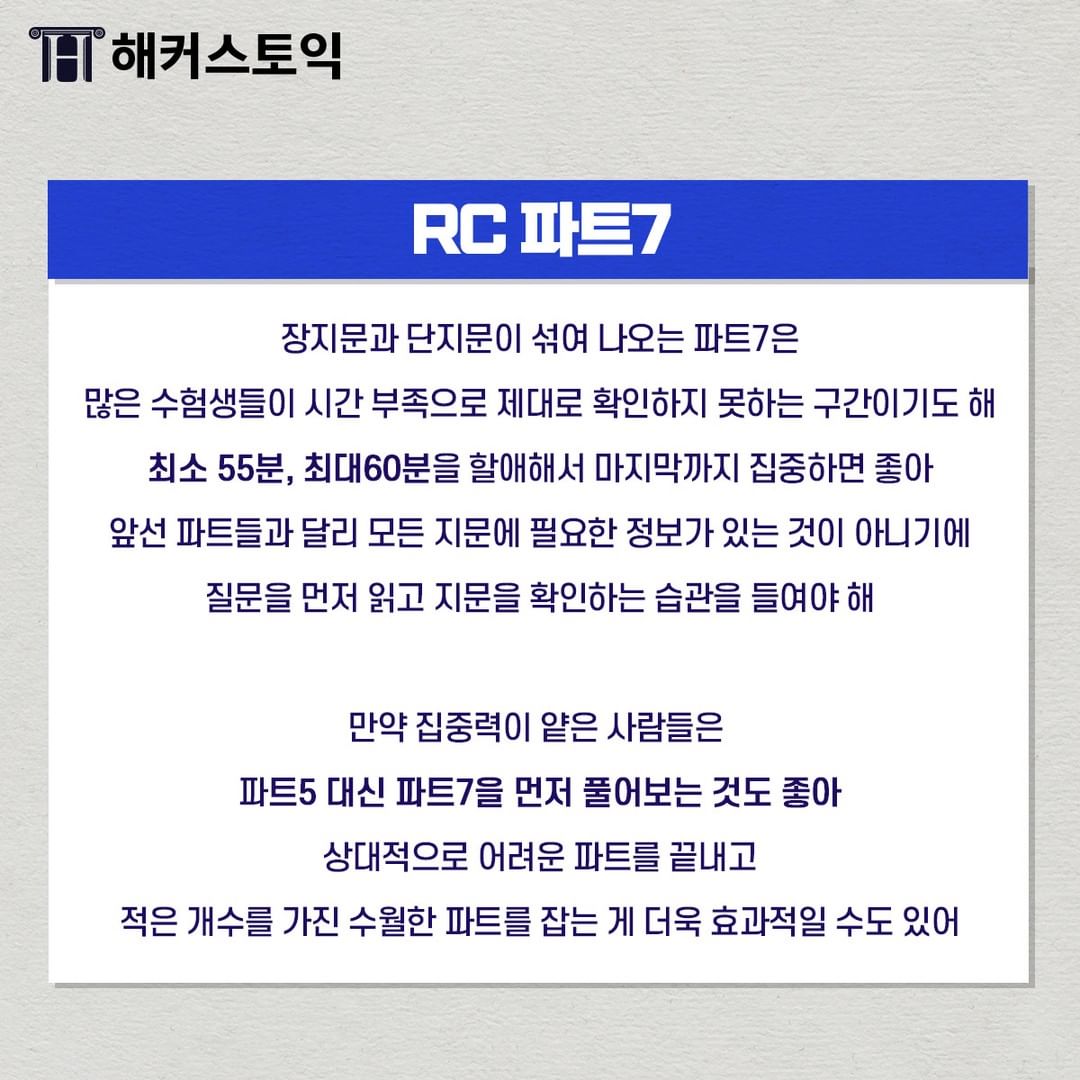 최소 55분, 최대 60분을 할애해서 풀어야 한답니다!