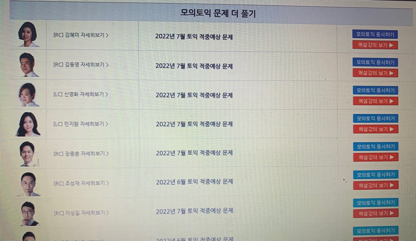 7월 10일 토익시험 전 오늘 소개해드린 컨텐츠 문제 싹 다 풀고